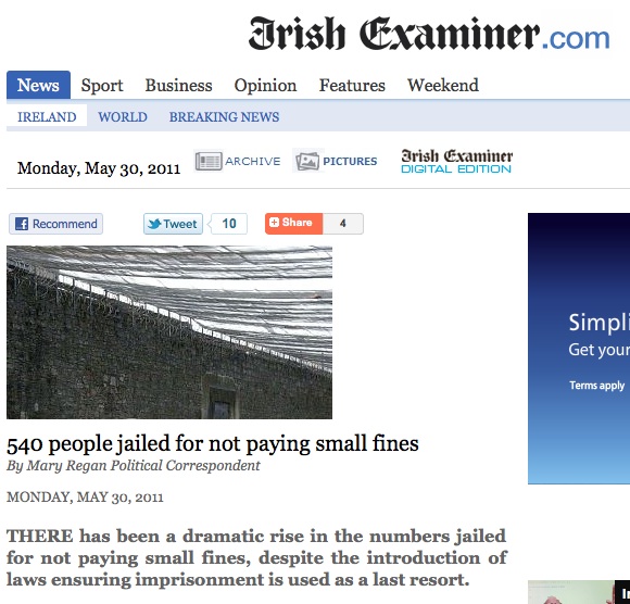 540 People Jailed For Not Paying Small Fines (Mary Regan, Examiner)