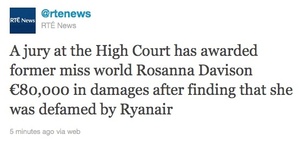 Rosanna Davison Awarded €80,000 In Damages (RTE News)