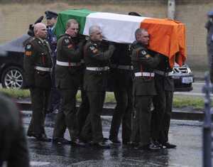 Mary Mary and Nick RobinsonThe establishment gather as Garret FitzGerald’s coffin arrives last night at the Sacred Heart Church in Donnybrook, Dublin 4, after lying in state at the Mansion House, where 20,000 people reportedly paid their respects.