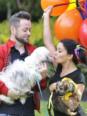 Michelle McGrath and this year’s Grand Marshall, Michael Barron, CEO of BeLonG To and the man behind the Stand Up! anti bullying campaign, together with some squee pups dressed in the LGBT rainbow colours.
