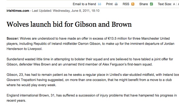 Today’s Irish Times Typo: Wolverland Admin at 7:57 pm June 8, 2011 Wolves to Sunderland in the blink of an eye. Thanks Deano FacebookTwitterPinterestSponsored Link