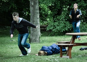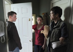 The question troubling Bodger since Dave joined the cast is this: is he being put in positions that even longer-armed actors would find a bit of a stretch? Carrying groceries and a paper while grappling with dialogue and a door, answering the phone, chasing muggers, etc. etc. Are they rather clumsily trying to suggest that we would think he was incapable of said tasks because of his limb deficiency and are thus inspired by his noble phone answering, etc.? Is this not pretty condescending to Matt and us? What are the scriptwriters up to?