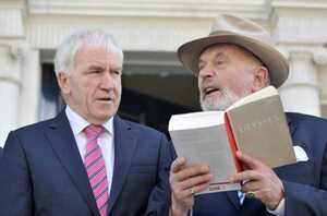 David Norris with Minister for Arts JImme Deenihan this morning at the Joyce Centre, North Great George’s Street, Dublin 1.