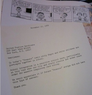 A letter sent to United Feature Syndicate 42 years ago regarding Franklin, the strip’s first African American character.
