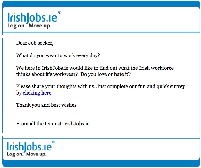 Dear Job SEEKER Admin at 3:24 pm June 30, 2011 Define ‘work’. Jammies till lunchtime. And by ‘lunchtime’ we do mean ‘after Countdown’. Jobs.ie questionnaire FacebookTwitterPinterestSponsored Link