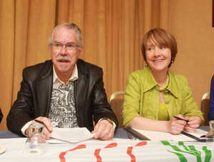 Robert Ballagh and Patricia McKenna at a People’s Movement press conference within the last two hours.
