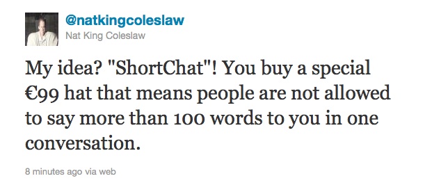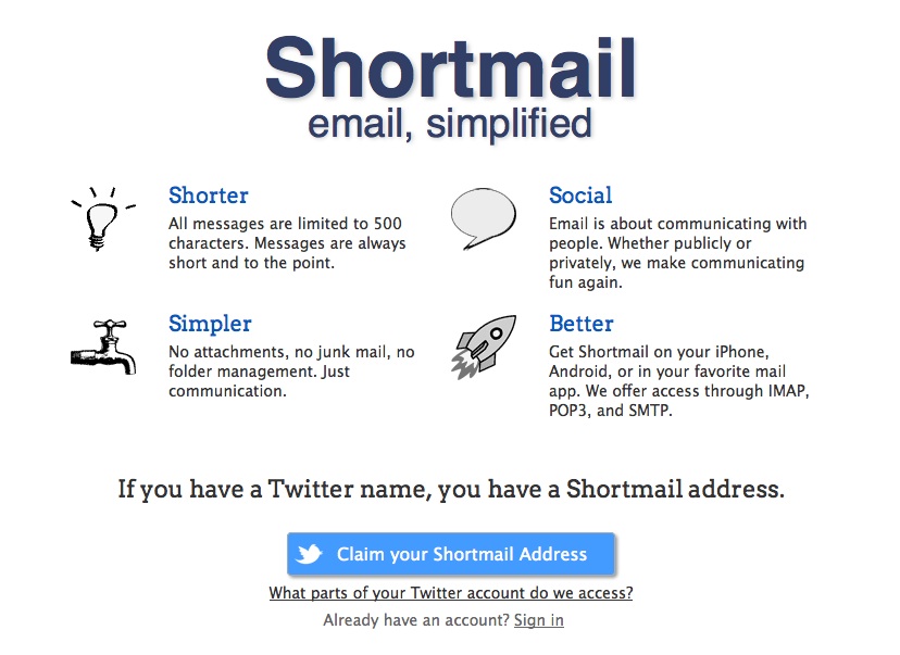 500 Characters, You Say? Admin at 2:37 pm July 4, 2011 Shortmail. Longer than Twitter, shorter than email. Hmmm. Shortmail Meanwhile, Nat has had a thought: FacebookTwitterPinterestSponsored Link