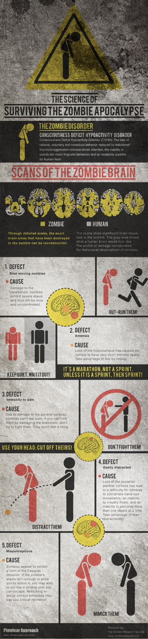 The Zombie Apocalypse: Are You Prepared? Niall Murphy at 12:23 pm July 4, 2011 Finally. A useful infographic. via FacebookTwitterPinterestSponsored Link Related posts: To Do List: Pay Gas Bill, Get Milk, Brains I’m Taking Your Banjo… Picnegen Éiretifacts