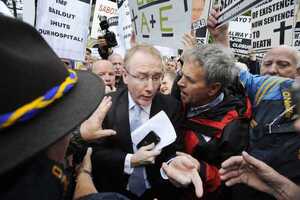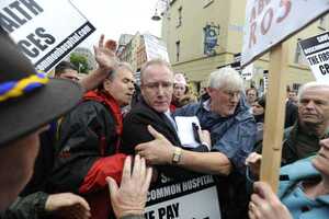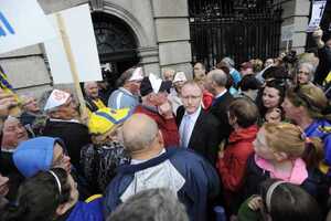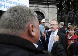 Roscommon Fine Gael TD Frank Feighan outside the Dail earlier this evening trying to explain why he was about to vote to downgrade Roscommon Hospital having got elected two months ago promising this: