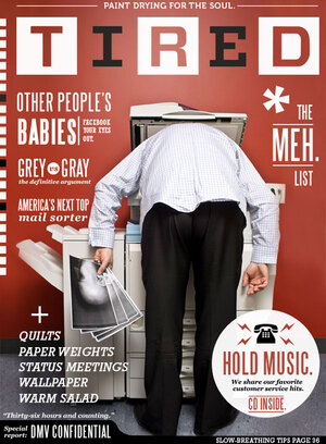 ‘Tired’ – the winner of BoingBoing’s recent ‘design the cover to a supremely boring periodical’ competition and (our favourite) ‘Magazine Aficionado’, which came third.