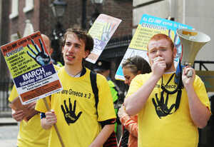 Car Mechanic Sought By Yellow T-Shirted Mob Following Pushing Incident Admin at 5:33 pm July 12, 2011 Taken within the last hour outside the Department of Finance. Students from the ‘Enough’ campaign protest the visit by the IMF/EU. (Leon Farrell/Photocall Ireland) FacebookTwitterPinterestSponsored Link