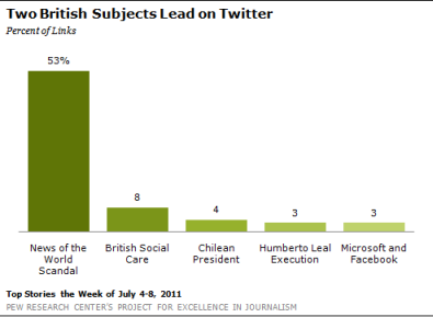 Murdoch Scandal Accounted for 53% Of links On Twitter… Admin at 11:04 am July 18, 2011 …but only six per cent of mainstream media coverage. Poynter.org FacebookTwitterPinterestSponsored Link