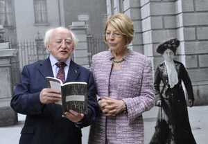 Presidential hopeful Michael D Higgins – with wife Sabina – at the National Museum last night to launch a collection of his poems and writings old, new and bilingual.