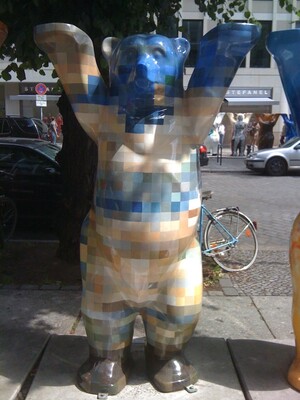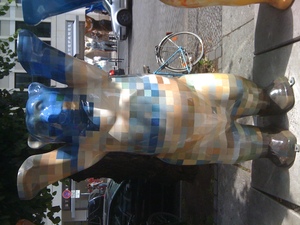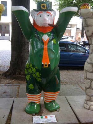 “At the moment there is an exhibition in Berlin called the United Buddy Bears. Artists from all around the world have been given the chance to represent their country by designing and decorating one of the famous Berlin bears. While countries like Cuba and Namibia took the opportunity to turn their pieces into a work of art, or Canada using a cool concept of pixelating their bear (above), our Irish artist Shaun Dolan decided to play it safe and perpetuate the typical Irish stereotype.All that’s missing is a pint of Guinness in the bear’s hand. The general reaction from people passing by was “haha look at Ireland”