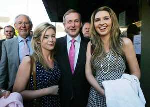 Enda with Allison Meagher (left right) from Dublin and Clare McTiernan from Leitrim, as he arrived to speak yesterday at the 31st Annual MacGill Summer School in Glenties, County Donegal. The gentleman with the half-beard is MacGill director and former RTE chief, Dr Joe Mulholland who can speak Irish using a superior French accent.