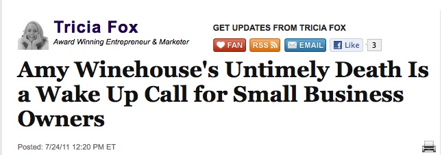 She Did Not Die In Vain Admin at 9:24 am July 25, 2011 Amy Winehouse’s Untimely Death Is A Wake Up Call For Small Business Owners (Huffington Post Business) FacebookTwitterPinterestSponsored Link