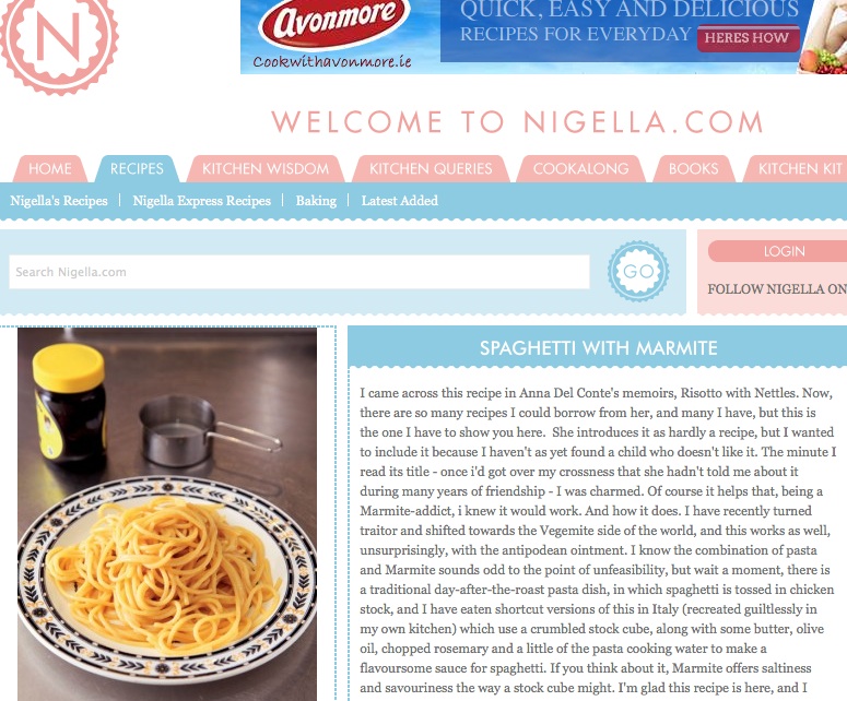 NO Admin at 11:12 am July 27, 2011 No. No. Nom nom nom. Spaghetti With Marmite (Nigella.com) Via @CairoTango FacebookTwitterPinterestSponsored Link Related posts: Troll Food Haute Cuisine Me Arse One For The Second Cutlery Drawer Down Get Drop While It’s Hot