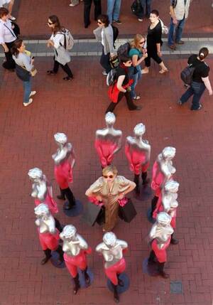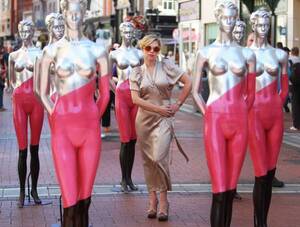 Sonya Lennon and mannequins launching the Dublin Fashion Festival on Grafton Street literally within the last hour.