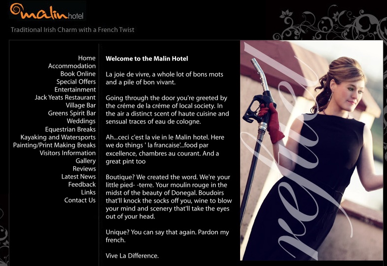They’re Calling It ‘Hotel WTF’ Admin at 10:05 am August 2, 2011 Malin Hotel, Donegal. Sensual traces of eau de cologne, Junior cert French and premium unleaded. Malin Hotel Thanks Hudson FacebookTwitterPinterestSponsored Link Related posts: Donegal This Weekend: Better Than A Hawaiian Massage Have A Break Altogether Now A Corner Of Ireland