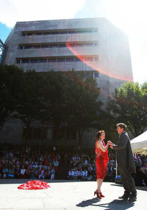 Opera in the Open’s season at the amphitheatre among the civic offices in Wood Quay, Dublin city centre, began yesterday with Bizet’s Carmen (Liz Ryan in the title role above). ‘An initiative of Dublin City Council Arts Office, Opera in the Open is on each Thursday at 1pm (until August 25).