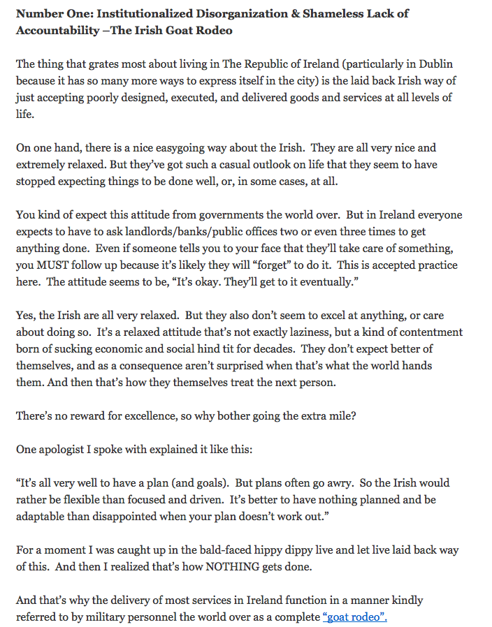 American freelance writer Glenn Kaufmann’s report card on Ireland.