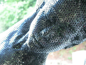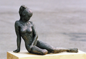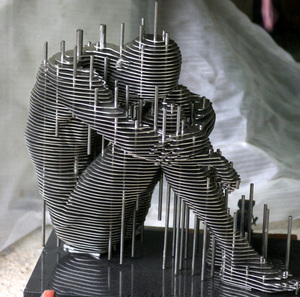 Korean artist Park Chan-girl builds up human and animal topographical sculptures by welding thousands of metal nuts together and arranging thin metal layers which he describes as “sliced images”.