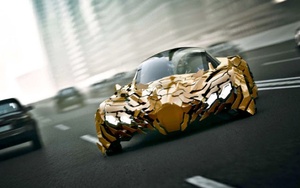 What you see here is the third iteration of the Flake, which uses 250 active body panels controlled by mini solenoids pulling on carbon nano-tube wires. The result is a body that can lay flat to decrease drag, hinge upward to slow the vehicle and collect solar power or open fully to aid cornering and increase downforce.