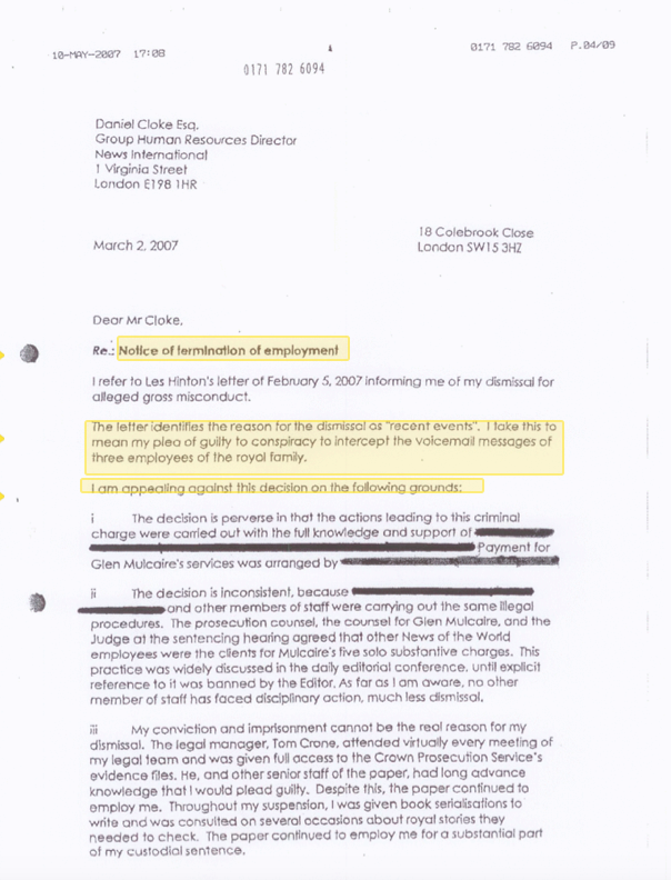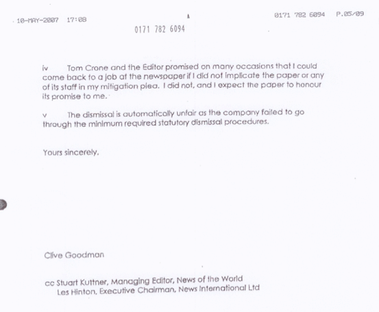Clive Goodman, former News of the World Royal correspondent who was jailed for phone hacking members of the Royal family, and (below) the letter that may help bring some of his former employers to prison.