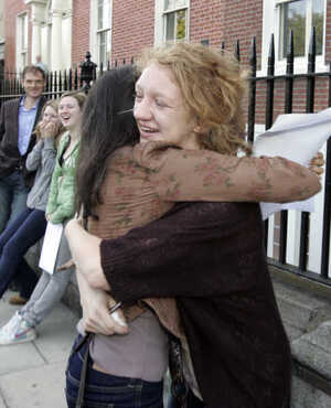 Loreto: Dierdre Ryan being congratulated by Maria Banat.