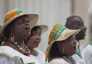 The Emerald Community Singers of Montserrat performing at Dublin’s City Hall today. The group are celebrating their 40th anniversary.
