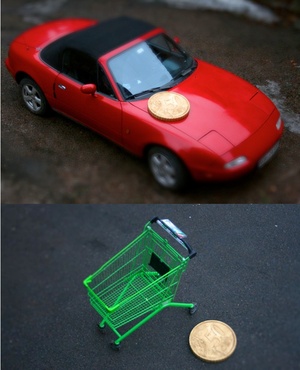 A project called Big Money by art outfit Skrekkøgle combines tilt-shift photography with a 20:1 model of a 50 cent coin to add a further layer of coup d’oeil to the classic mini-diorama effect.