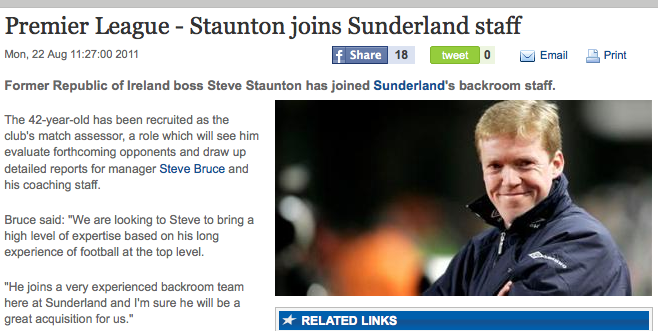 Tea’s Gone Cold I’m Wondering Why Admin at 5:48 pm August 22, 2011 STAN’S back!!! Premier League – Staunton Joins Sunderland Staff (Yahoo Sports) Thanks Zosimush FacebookTwitterPinterestSponsored Link