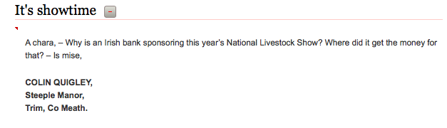 Why Now, Brown Cow? Admin at 4:57 pm August 22, 2011 Irish Times Letters AIB National Livestock Show FacebookTwitterPinterestSponsored Link