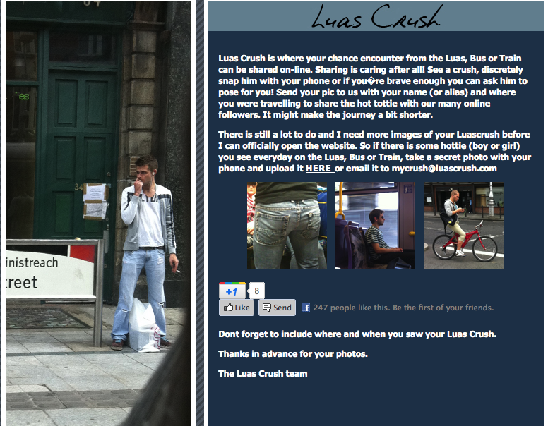 A Site For People You Fancy On The Luas Admin at 12:11 pm August 24, 2011 It’s due soon. Luas Crush Thanks Tequila Mockingbird FacebookTwitterPinterestSponsored Link