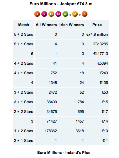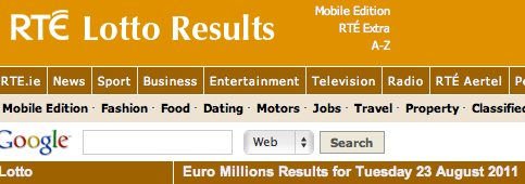 Euro Debt Crisis Latest Admin at 9:17 am August 24, 2011 Did you get two stars? You owe Camelot An Post €1. RTE Lotto Results (Euromillions) Thanks Hugh FacebookTwitterPinterestSponsored Link