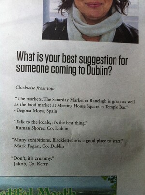 I spotted this today whilst bored in a hotel lobby, it’s from the July edition (page 38) of The Dublin Tourist Guide. Is this the best we can do?
