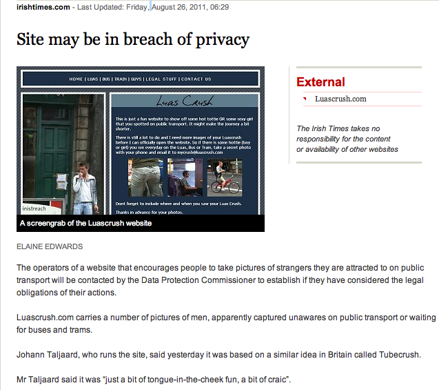 Site May In Breach Of Privacy (Elaine Edwards, Irish Times)