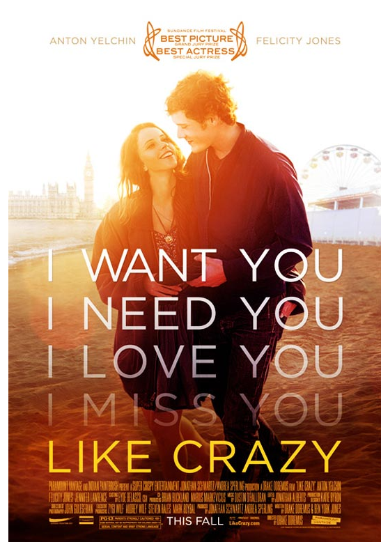‘Like Crazy’, Sundance-winning ‘indie weepie’ set in England and America and casted by ‘unknowns’.