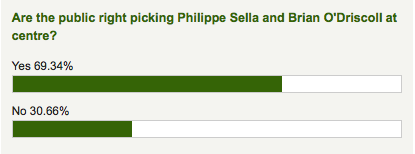 Despite World Cup winner Will Greenwood available for selection, as well as Jeremy Guscott and New Zealander Frank Bunce, O’Driscoll leads the way in the most popular midfield for the greatest Rugby World Cup XV.