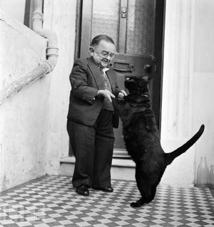 Look At The Size Of That Cat! Oh, Wait Admin at 9:24 am September 2, 2011 76cm tall Henry Behrens – the smallest man in the world in 1956 – dances with his cat outside his home in Worthing, England. via/via FacebookTwitterPinterestSponsored Link Related posts: Dual-Wield Lightsaber Sith Cat Question: Do You Want The Vet? Ginger And The Chicks Behold: Cat Beard