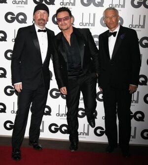 Bono, The Edge and Adam at the GQ Men of The Year award last night in London where U2 won band of the year. Rory Mcllroy won sports person of the year.
