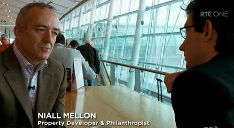 Niall Mellon, “property developer and philanthropist”, was among those interviewed for the slickly-shot, terror-stricken Prime Time Namagedden special on RTE last night, fronted by Clark Kent Ian Kehoe