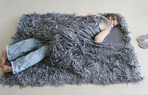 Inspired by the comb-over hairdo commonly used by bald men…the carpet generates various possible usages, such as covering yourself with the long strands or making a “ball” out of them to rest your head.