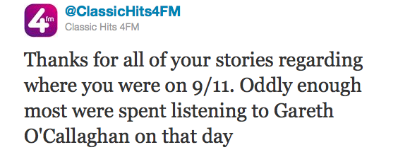 Classic Hits Admin at 5:41 pm September 10, 2011 Where were YOU when you were listening to Gareth as the towers fell? FacebookTwitterPinterestSponsored Link