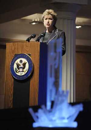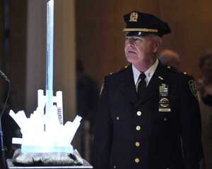 New York City police officer Lt. William Cosgrove this afternoon with ‘Miracle on Stairwell B’ by Sean Egan, presented to the NYPD by President Mary McAleese at a special 9/11 Ceremony at the RDS in Ballsbridge, Dublin 4.