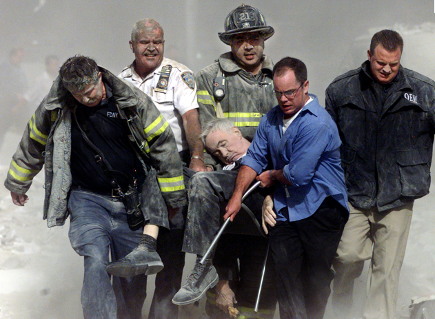 And this was LT Cosgrove helping to carry fire department chaplin Fr Mychal Judge, who died from his injuries, out of the North Tower of the World Trade Centre on September 11, 2001.