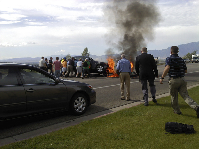 Bystanders lift burning car to rescue injured motorcyclist in Logan (The Salt Lake Tribune)