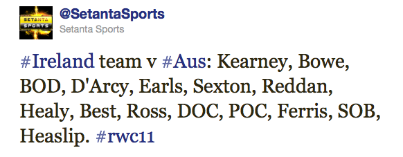 Previous World Cup meetings: Four (Aus 33-15, Sydney, 1987; Aus 19-18 Ire, Dublin, 1991; Aus 23-3 Ire, Dublin, 1999; Aus 17-16 Ire, Melbourne, 2003)