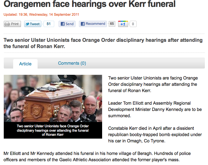 They Went To A Funeral Admin at 10:12 am September 15, 2011 That’ll learn them. Orangemen Face Hearings Over Kerr Funeral (RTE) FacebookTwitterPinterestSponsored Link