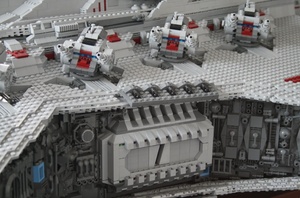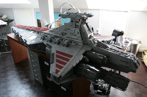 A 43,000-part, 82 kilogram, 2.44 metre long Venator Class Star Destroyer built entirely from Lego by übergeek Iomedes.